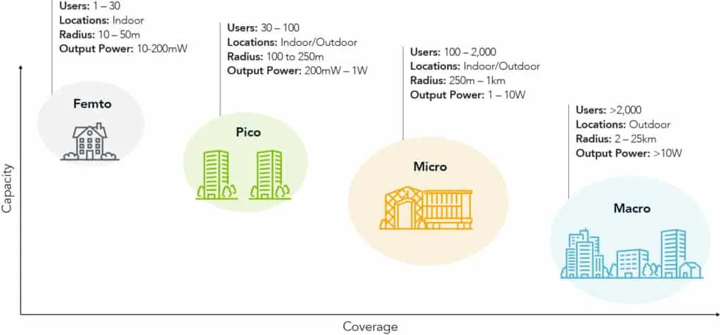 Small cells are low cost, low power radio access units deployed to complement the macro base station to ensure uniform user experience. With the purpose to bridge coverage gaps & meet capacity demands at low capital expenditure, small cells are designed to be compact and enable smooth deployment in indoor and outdoor settings. Available in myriad different shapes and sizes, small cells are broadly classified as Femto, Pico, or Micro based on the coverage range, power level, configuration & deployment model.